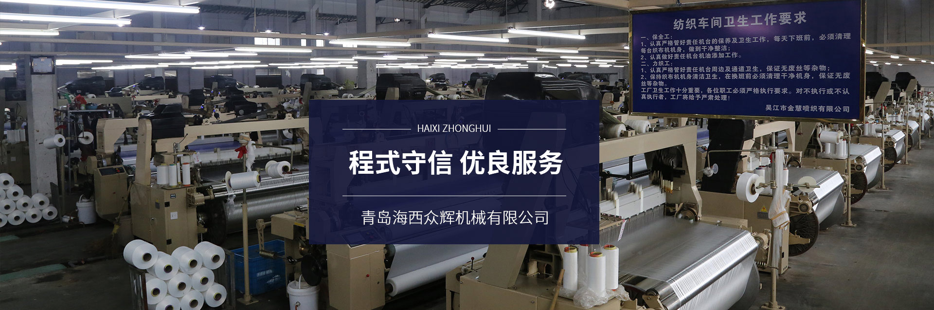 青岛海西众辉机械有限公司现有员工一百多人公司引进世界先进技术,专业从事纺织机械的研发、生产、销售,年生产销售各种织机2000多台套。